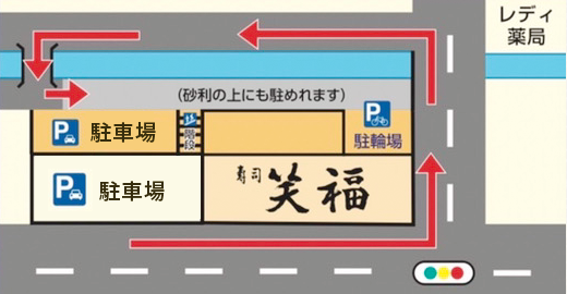 店舗下の駐車場へお進みください。