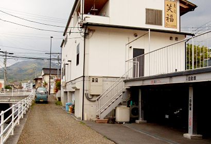 店舗入口の裏道から